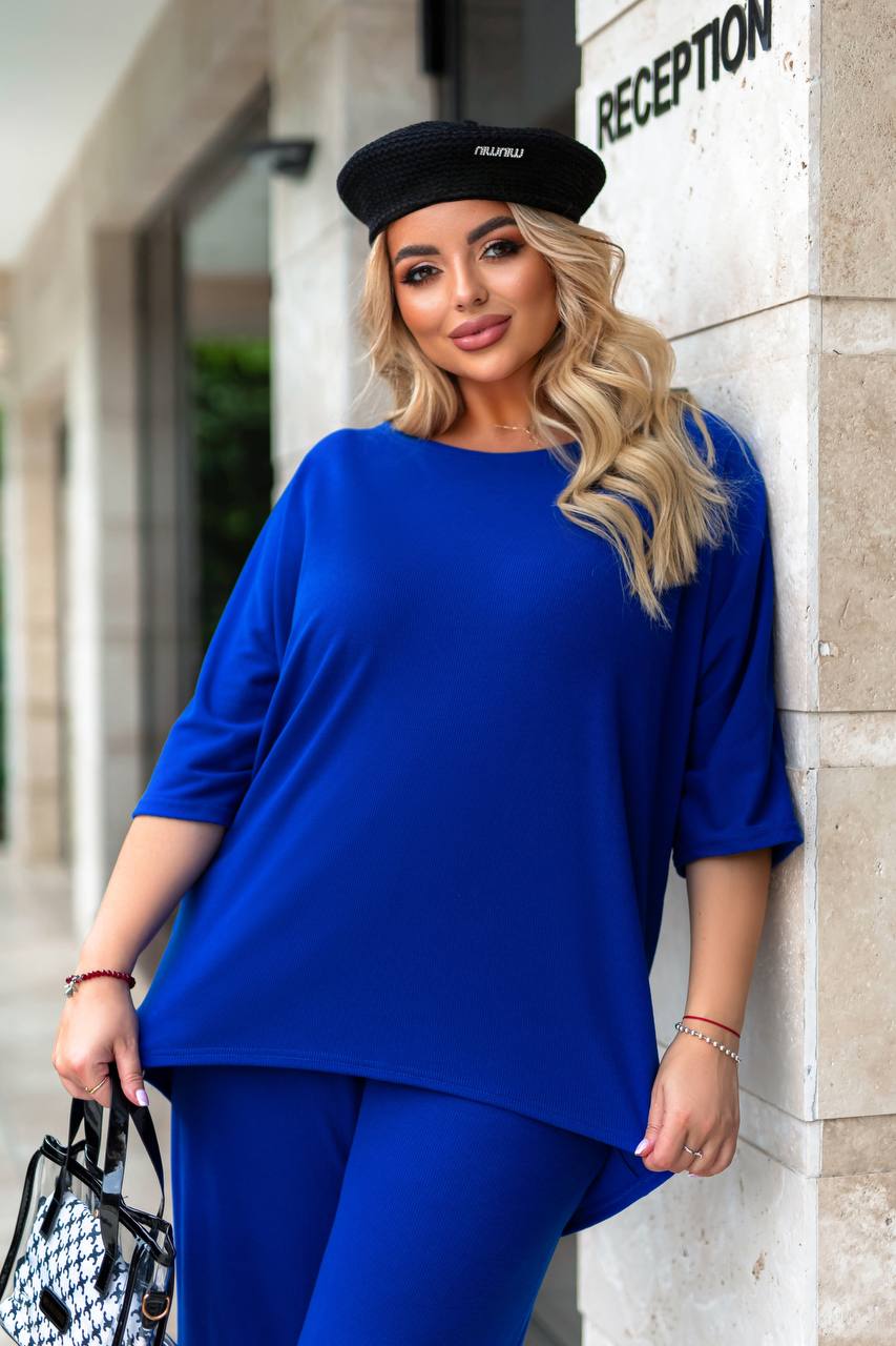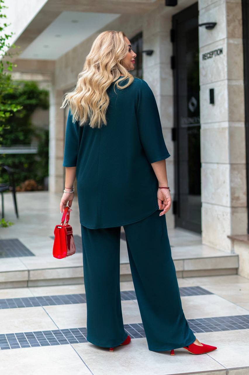 заміри: 52-54: КОФТА: ОГ-146 см, ОТ-132 см, рукав від горловини-48 см, довжина попереду-70 см, довжина по спинці-83 см. ШТАНИ:ОТ-78-98 см, ОС-124 см, довжина по зовнішньому шву-107 см, довжина по внутрішньому шву-78 см